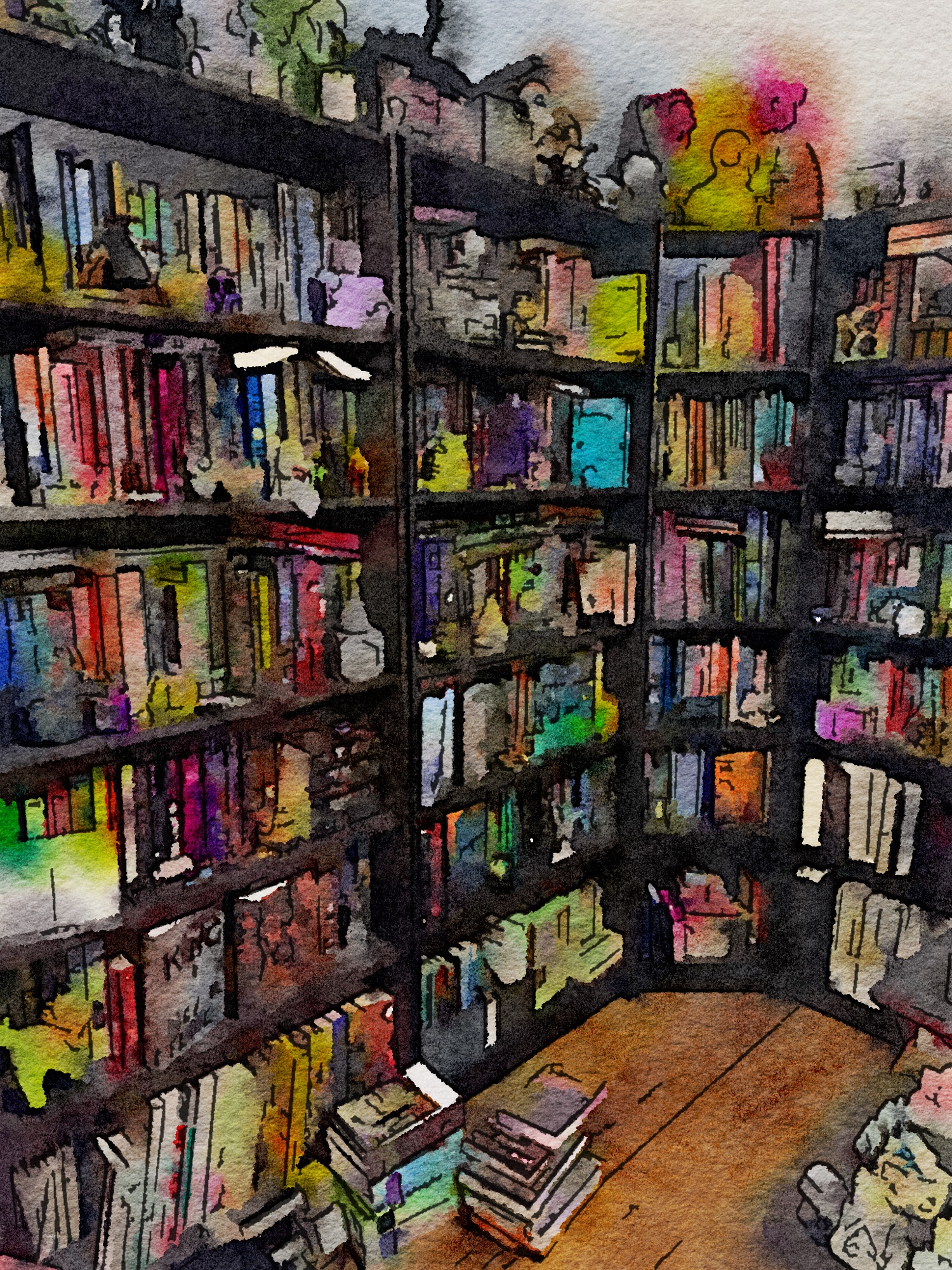 My home library – photo edited with the Waterlogue app
