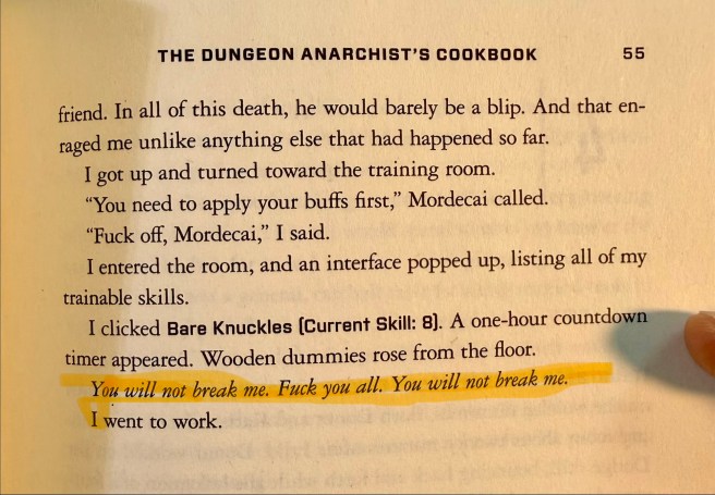 The last book is also my favorite of the month and possibly the entire year. I binged the first few chapters, staying up later than usual with no regrets. This book is a master class on pacing, conflict, hooks, and characterization. The unlikely plot – aliens have destroyed the Earth and the survivors must compete in an intergalactic game show that takes place in a dungeon – makes perfect sense once you get into the story. There’s magic, violence, fantasy, and a talking cat. The cat, Princess Donut the Queen Anne Chonk, is one of my favorite all time characters. By the end of the first chapter, I was rooting for her and Carl and hoping they didn’t get killed by the drug-dealing llamas or exploding goblins. Writing lesson – once the reader loves the main characters they’ll follow them through the story. Another lesson – give a satisfying ending with each conflict but also introduce a new conflict as a result of that ending. I LOVE these books – I bought the rest of the series (what has been published so far, that is) before I made it halfway through the first book. I’ll be reading the second book over the Christmas holiday next week, which will be much better for my blood pressure than doom scrolling Facebook.